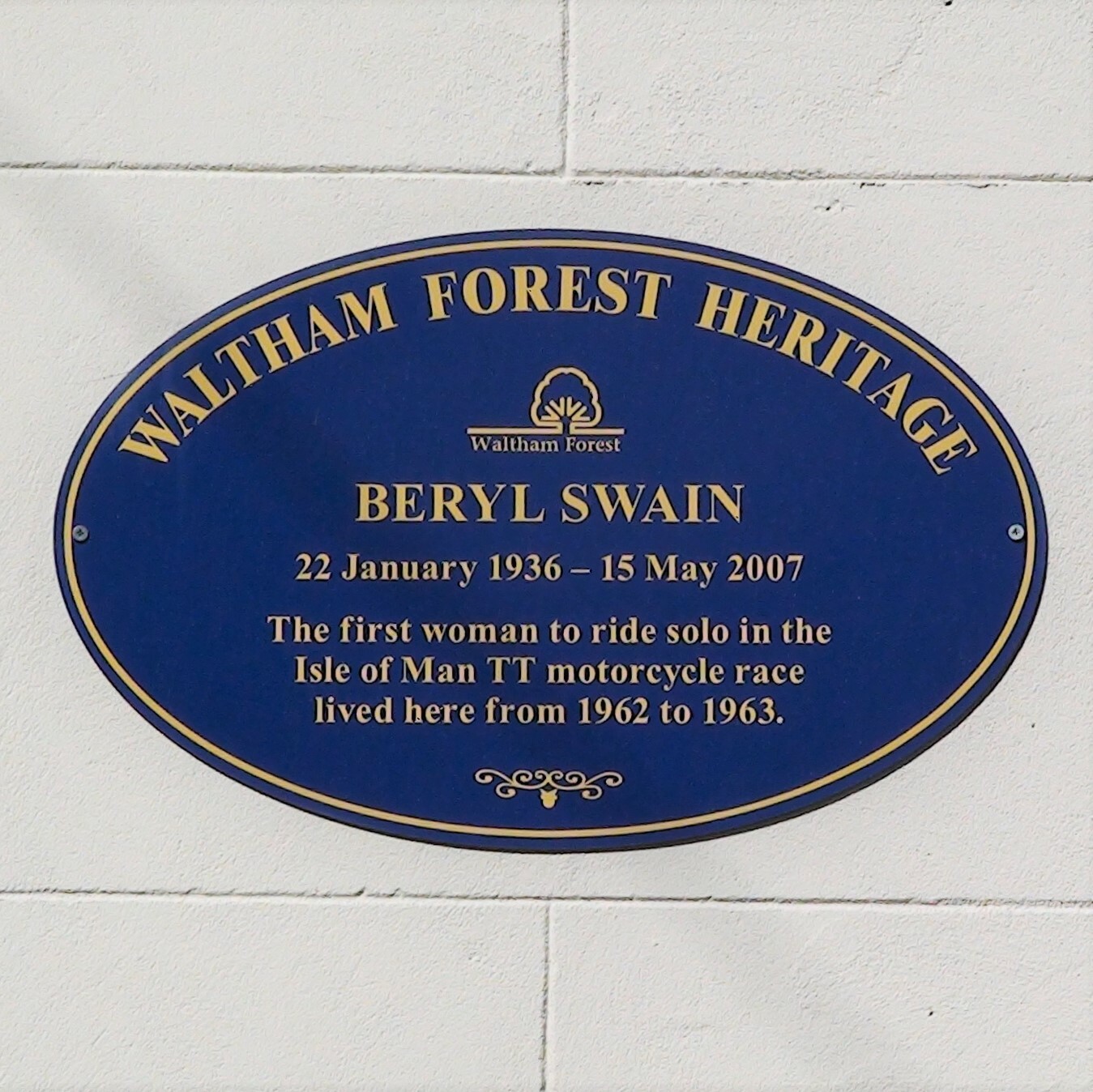 Beryl Swain, 22 January 1936 - 15 May 2007, the first woman to ride solo in the Isle of Man TT motorcycle race, lived here from 1962 to 1963.