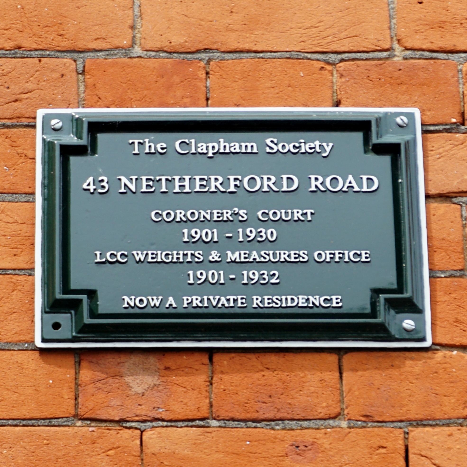 43 Netherford Road, Coroners Court, 1901 - 1930. LCC Weights and Measures Office, 1901 - 1932. Now a private residence.