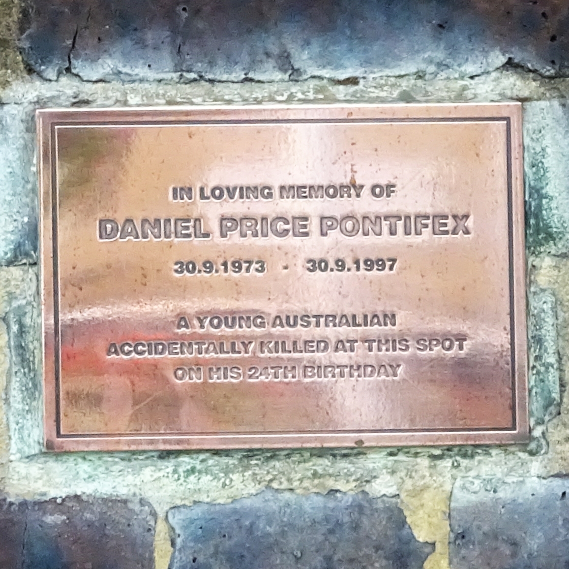 A young Australian accidentally killed at this spot on his 24th birthday.