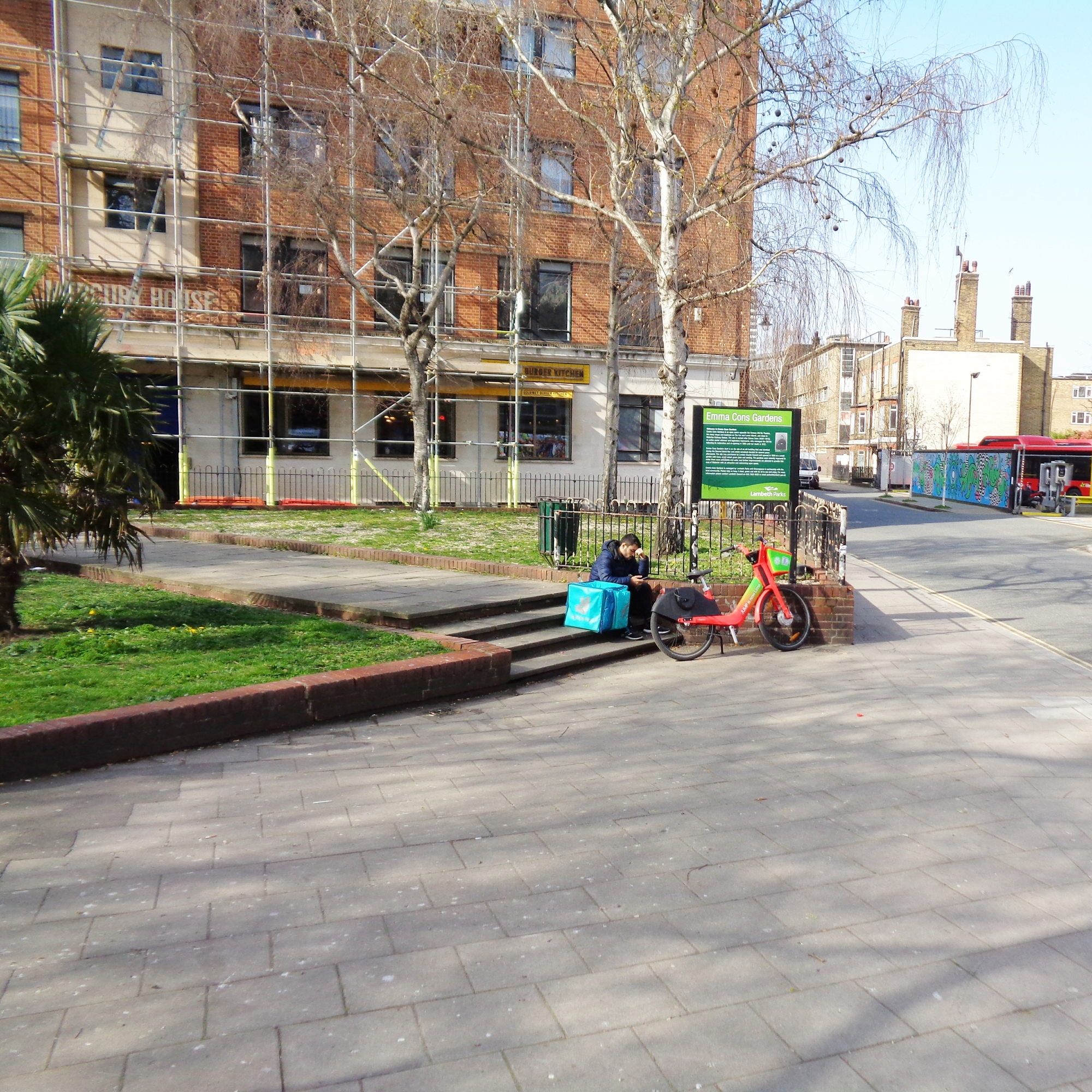 ... The site is named after Emma Cons (1838 - 1912), an active social reformer and legendary impresario, who managed the Old Vic following its restoration and re-opening in 1889 until her death in 1912. Emma Cons Gardens itself is on the site of an old building that was bombed during the second world war and which remained derelict for several years afterwards. The site was purchased by London County Council and opened in 1958 as a small garden with trees, small raised grass plots and seating, .. Emma Cons Gardens is managed by Lambeth Parks and Greenspaces in partnership with the local community. ...