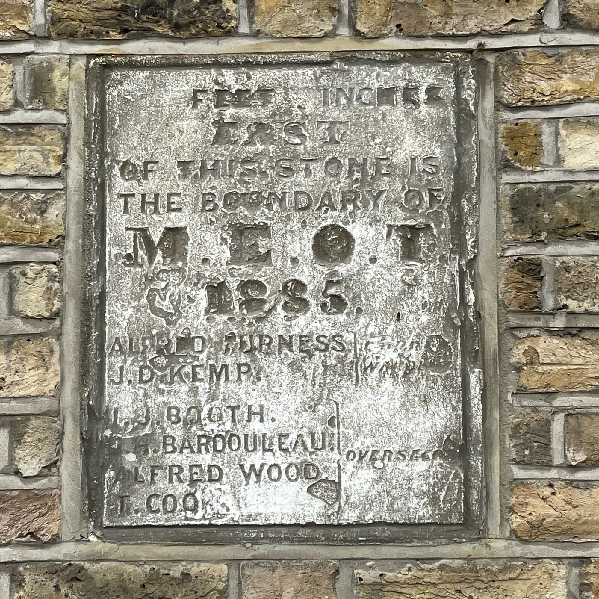 … feet … inches east of this stone is the boundary of M.E.O.T. 1885.