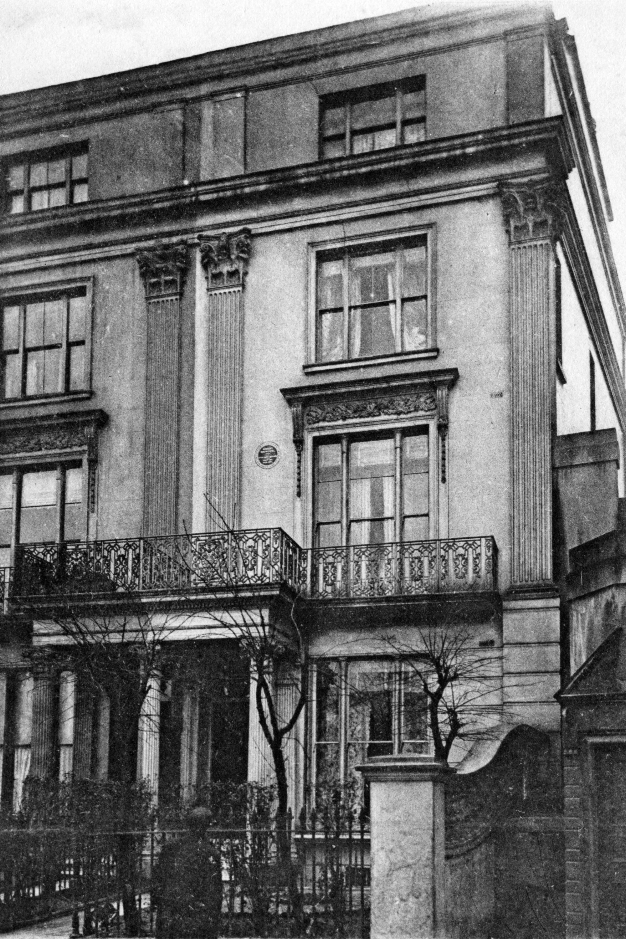 The poet Robert Browning lived here from the time of his return from Italy after the death of his wife, in 1861, until the summer of 1887 when he moved to 29 De Vere Gardens.