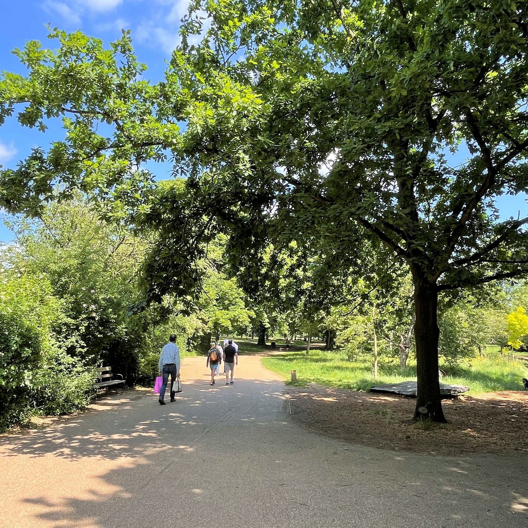 The trees with these 4 Ealing Council plaques are all on the section of path in the photo.