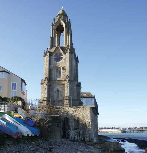 The tower became an obstruction to the ever-increasing traffic using the bridge so it was removed (by George Burt of Mowlem) in 1867, transported to Swanage and reassembled there in 1868, between the pier and the lifeboat station. The clock which had not kept good time in London (possibly due to the traffic) did not find its way to Swanage. The spire was taken down in 1904. And the statue shown in the drawing never existed except in the designer's mind's eye.