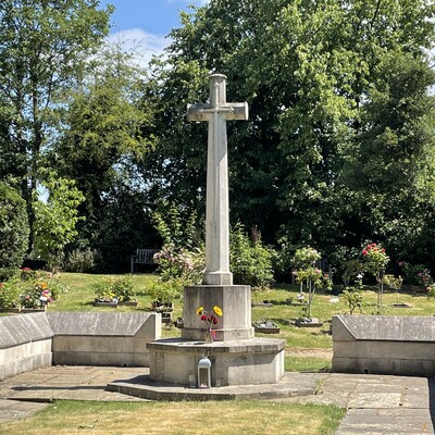 These WW1 names are inscribed on the tilted top of the enclosing wall, and pr...