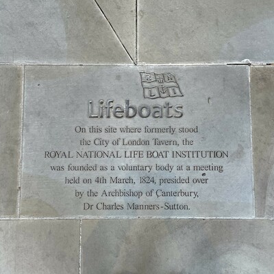 {Below the RNLI logo:} Lifeboats On this site, where formerly stood the City ...