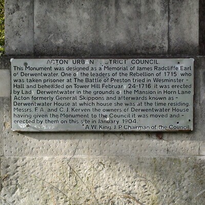 has: "There has been confusion between Acton House {lived in by General Skippon and his wife, c.1650-60} and another residence, called after the last countess of Derwentwater. The countess stayed during her husband's trial {up to 1716/21} at Acton House, in whose grounds Selby {historian Nicholas Selby} built DERWENTWATER HOUSE, possibly in 1804. Selby sold it c.1820 to George Kelly, who owned it in 1842, but in 1859 it was sold to J. B. Nichols. It remained a private house until it became Acton Liberal and Radical Club after 1890. The frontage was reduced for road widening, and the house itself was demolished in 1909."
