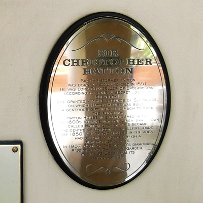 The street was developed by and named for Sir Christopher Hatton. It is London's jewellery quarter and the centre of the UK diamond trade. This specialism grew up in the early 19th century spreading from its more ancient centre in Clerkenwell to the north.