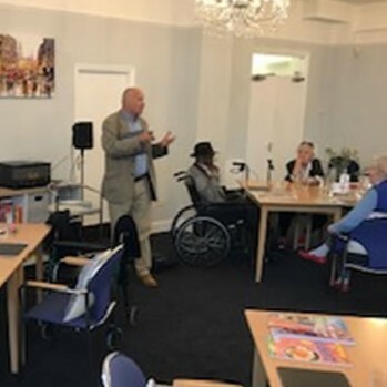 This photo shows him giving a local talk based on his book about the courtship and marriage of his great grandparents who corresponded throughout 1885.