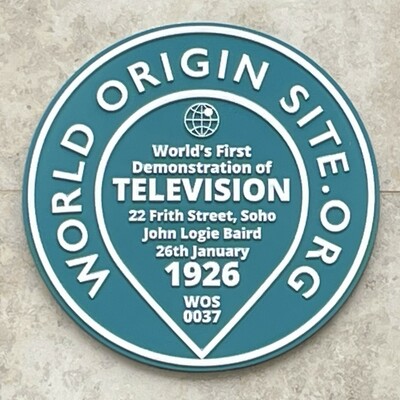 Frith Street, 26 January 1926: Baird first demonstrated the transmission of moving images to members of the Royal Institution and a reporter from The Times. This was a very short-range transmission, captured and viewed in the same set of rooms.