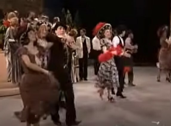 The 1937 musical 'Me and My Girl' and the subsequent 1939 film, Lambeth Walk, featured characters singing this song while strutting along .  Gangnam style it ain't.