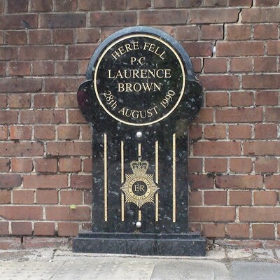 He is shown as "P.C. LAURENCE BROWN" on the Police Memorial Trusts's memorial stone at Pownall Road, London, E8.