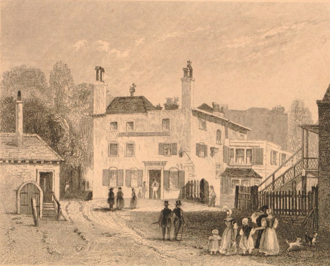 The small structure to the east of the Spaniards Inn was built as a toll booth, around 1710. The land to the north of this point was owned by the Bishop of London, who collected tolls from travellers as they entered onto his land.