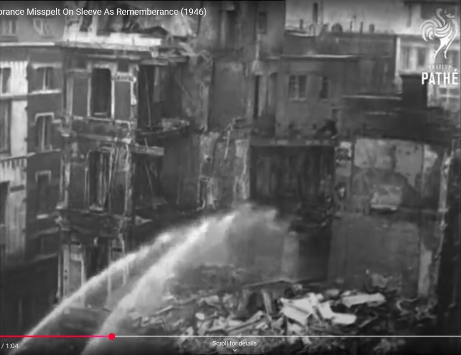 This image is a screen grab from the showing the aftermath of the bombing. Part of the building which was the rectory is still standing, towards the left.